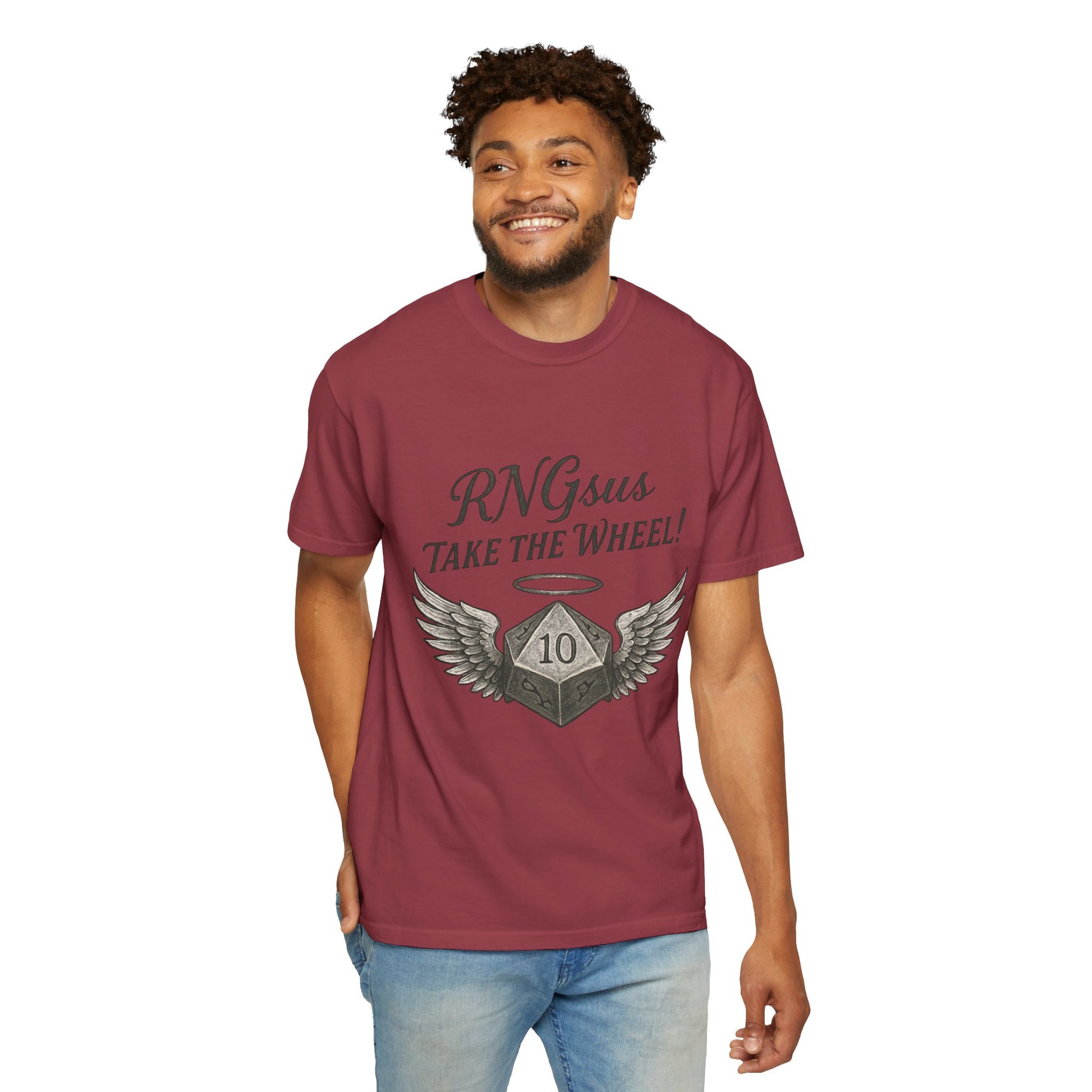 The RNGsus Take the Wheel D20 tee is for tabletop players who’ve trusted the dice one too many times and lived with the results. It’s a nod to critical fails, miracle saves, and campaigns held together by pure luck.